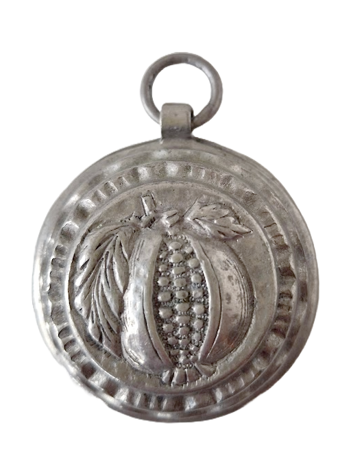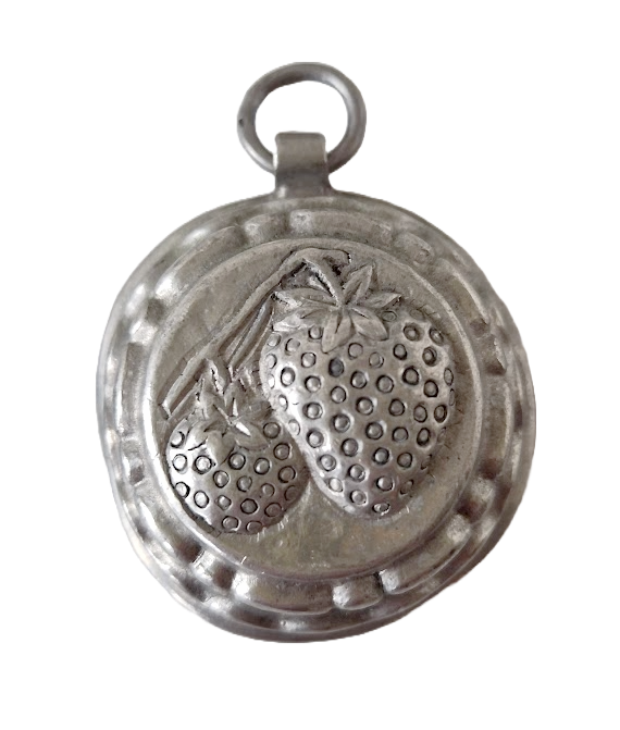 Highly collectible and sought after moulds for making chocolates or candies, dating from the early 20th century, French or Belgian. Excellent condition. One features two strawberries, the second features cherries, the third features a flower design and the fourth a corn cob.