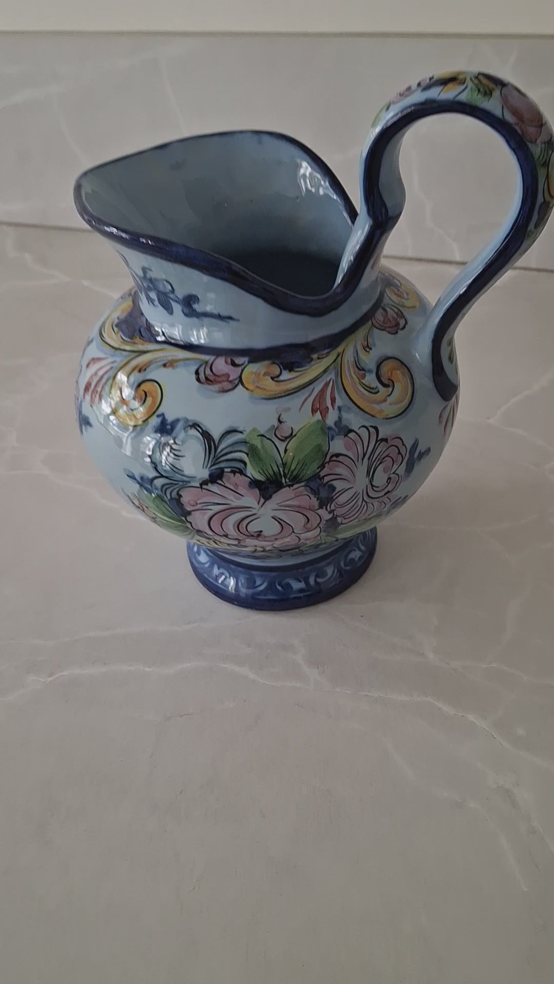 Beautiful ceramic pitcher from Alcobaça in Portugal, with handpainted floral pattern. In excellent condition.